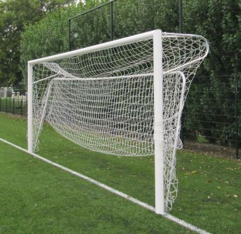 De witte poedercoating zorgt ervoor dat er geen scherpe randen meer aan de grondbeugel zit. Dit bevordert de levensduur van het doelnet.